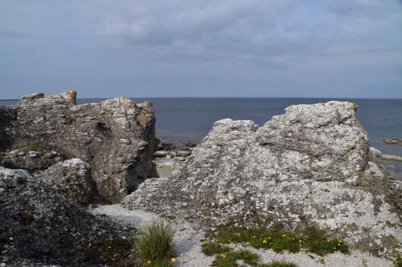 Raukarna i vattnet står på en pall av lagrad kalksten som sträcker sig utåt under vattnet. Det är häftigt när jag tänker på att pallen slutar i en brant undervattensklint där det plötsligt är 50-60 meter djupt. I en äldre bok läste jag att det var utmärkt för den som vill fiska torsk från land.