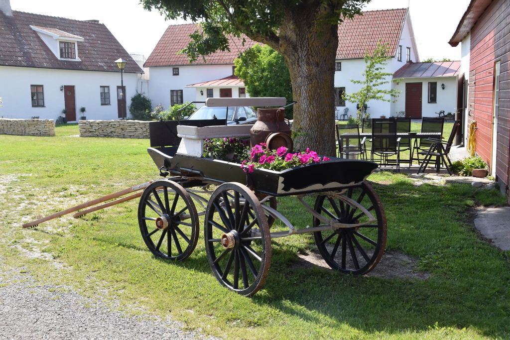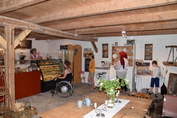Vi var där i juni och hade redan fikat. Nu vet jag att de i juli även serverar fika till besökarna. Borde vara uppskattande att sitta på gården.