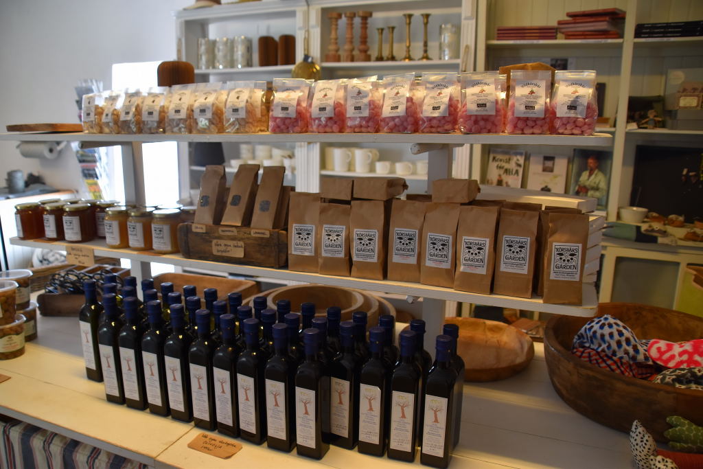 Nu var vi här enbart för att fika och se vilket utbud som fanns till försäljning. Om man betalar en slant går det annars att njuta av konsthall och skulpturgalleri. På sommaren anordnas teaterföreställningar och litteraturaftnar.