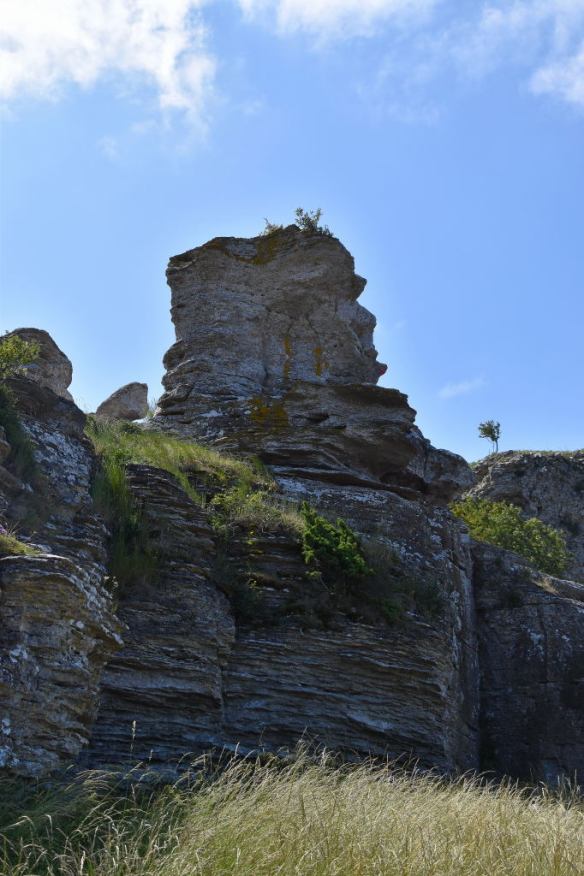 En sista stund njuter jag av de branta klippformationerna med grottor och sevärda raukar där endast den egna fantasin sätter gränserna.