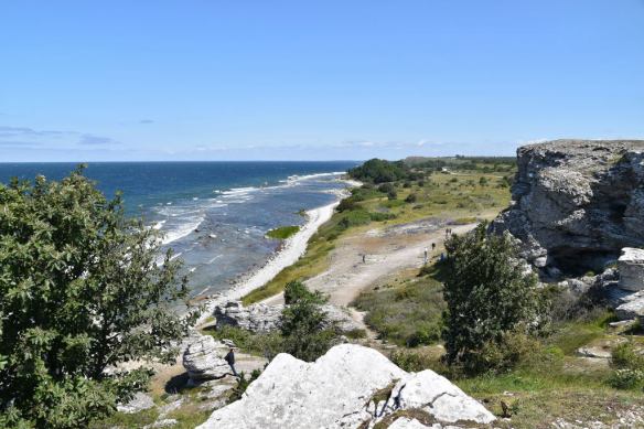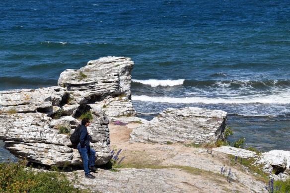 Det är en mäktig känsla att befinna sig vid detta raukområde där det alltid verkar att blåsa. Det var enda stoppet där jag hade på mig jackan. Annars är detta sydliga område känt för att ha mest sol och minst regn på Gotland. Läste igår att Hoburg slagit nytt månadsrekord för juni vad det gällde soltimmar. Trots att det regnat betydligt mer än det gjort de senaste åren. Otroligt vad vädret och temperaturen kan skifta mellan platser på Gotland.