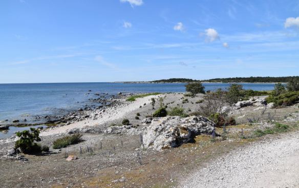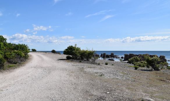Inte långt ifrån detta raukfält ligger ett annat mer berömt och känt – Holmhällar. Nästa gång får det bli två cyklar därbak på bilen. Både denna sträcka och den jag berättade om på andra sidan Sudret är som gjorda för att sitta på en sadel och trampa runt. Sedan kan bilen rulla ensam bakom och finnas till hands vid uppförsbackar, snöstormar och brist på luft i ringen. För punka är trist men visst. 😊