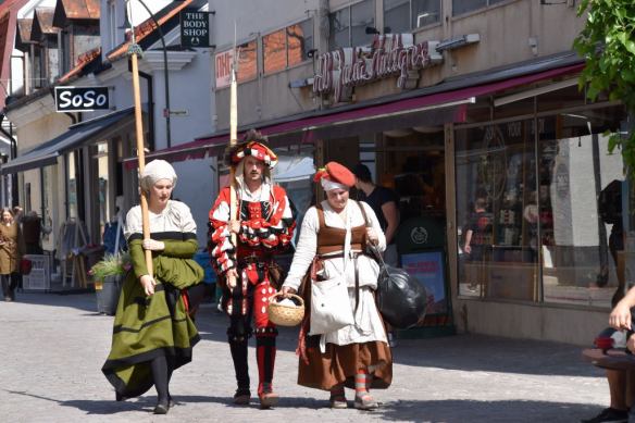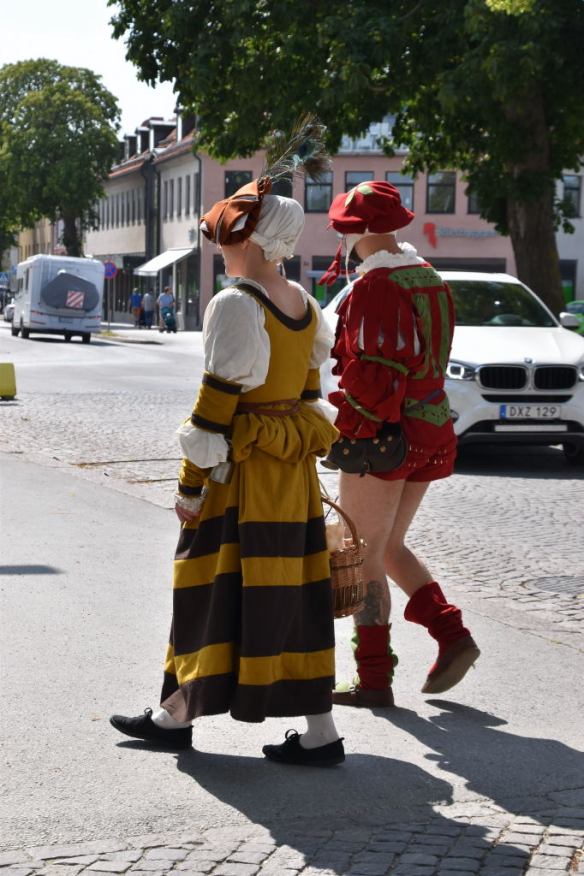 Solveig skulle denna eftermiddag på ärenden utanför muren. Därför delade vi på oss vid Söderport. Efter det att jag parkerat cykeln planerade jag att gå Adelsgatan fram och tillbaka och ”spana av” Söder Torg för att plåta olika medeltidskläder.