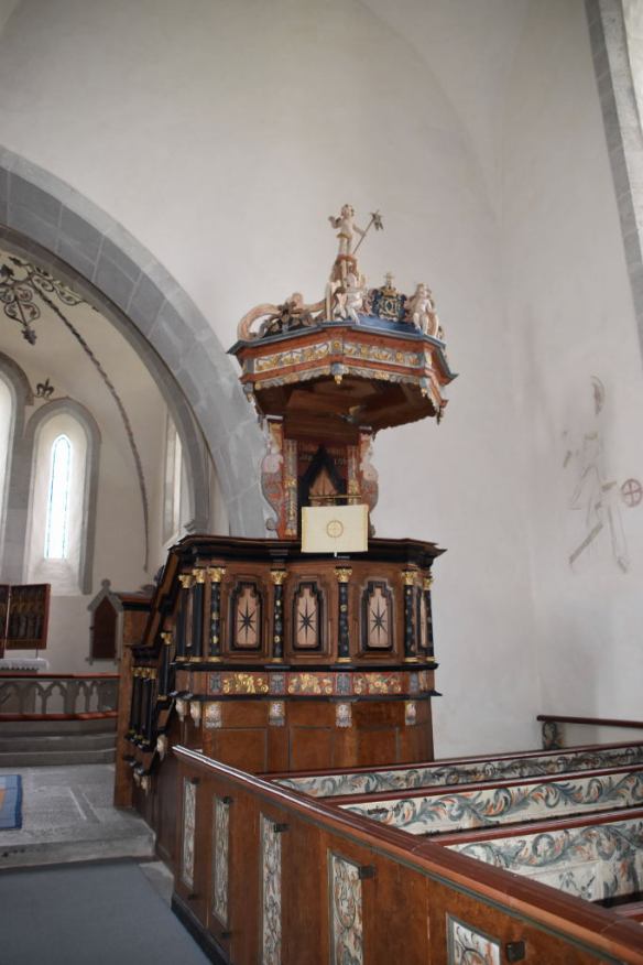 Predikstolen från 1718 är troligen utförd av Christian Fedder.