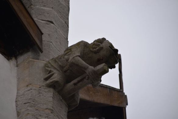 a) I kyrkgolvet (hopplöst att fotografera så texten blir synlig) finns det gravstenar från olika tidsepoker. En av dem är från 1274 och med namnet Nicolaus Taksten. I sägnerna utpekas mannen som en mycket ond och våldsam man. Gravstenen ber läsaren beklaga hans brott.