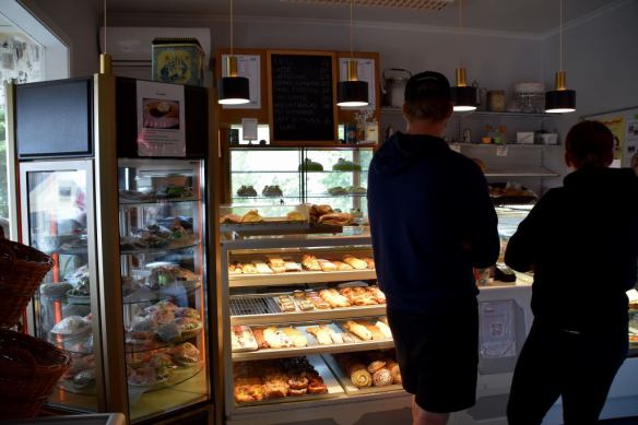 Solveig var kvar i kön vid disken. Vi hade bestämt oss för att fika utomhus som de andra besökarna gjorde.