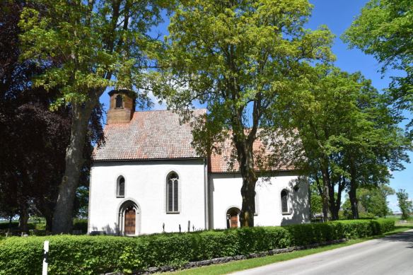Nu lämnade vi den gotländska slätten och rattade vidare till en annan kyrka som har ett vackert änge i närheten och dessutom är en plats som är känd för en blodig strid mot hänsynslösa överlägsna danskar, som ämnade lägga Gotland under sina fötter. Precis som de tidigare hade gjort med Halland och Skåne. Jag tror inte oddsen var stora att Valdemar Atterdag fick komma till himlen. Men vad vet lilla jag.