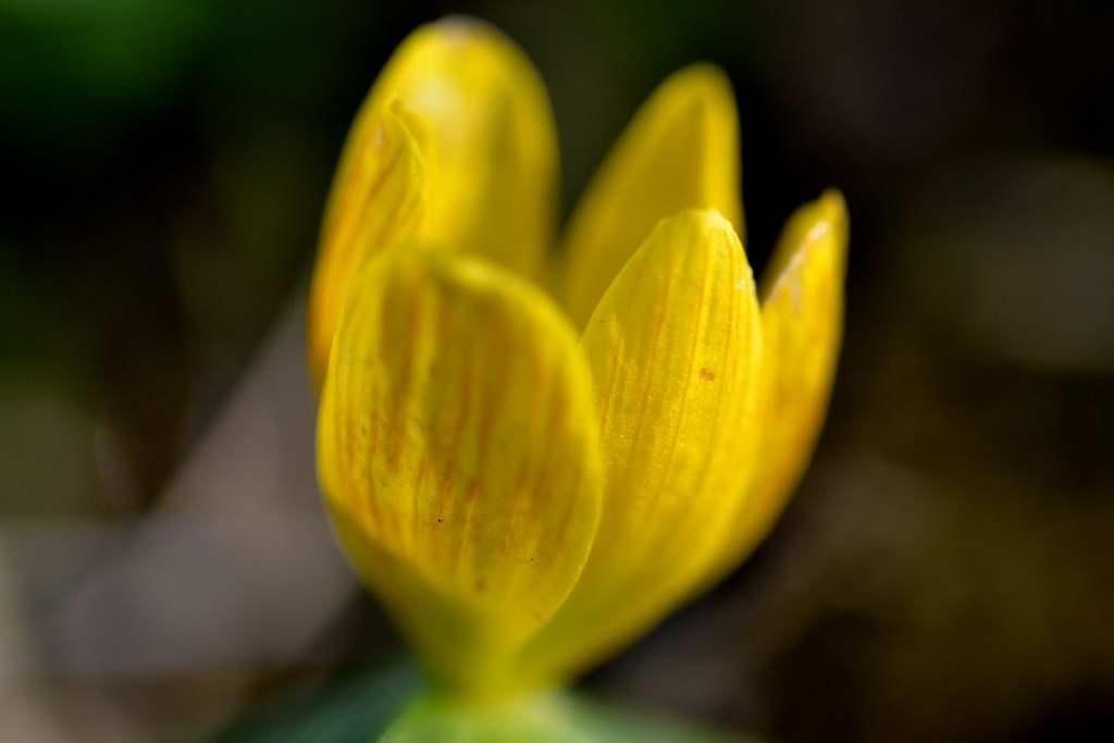 Varken tulpan eller krokus – utan en vintergäck på nära håll.