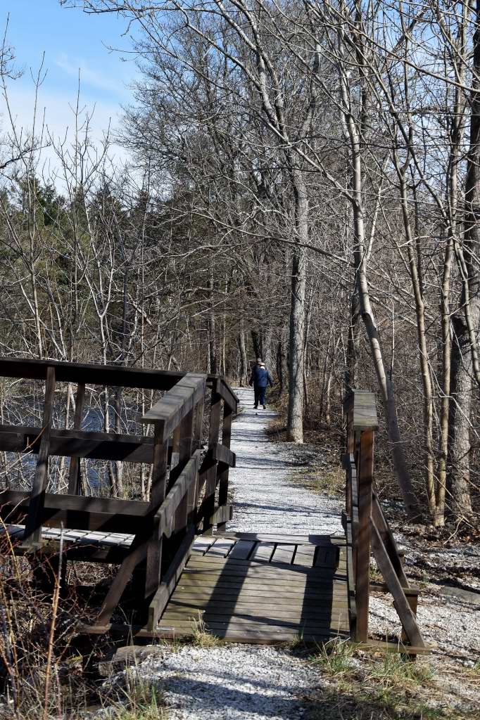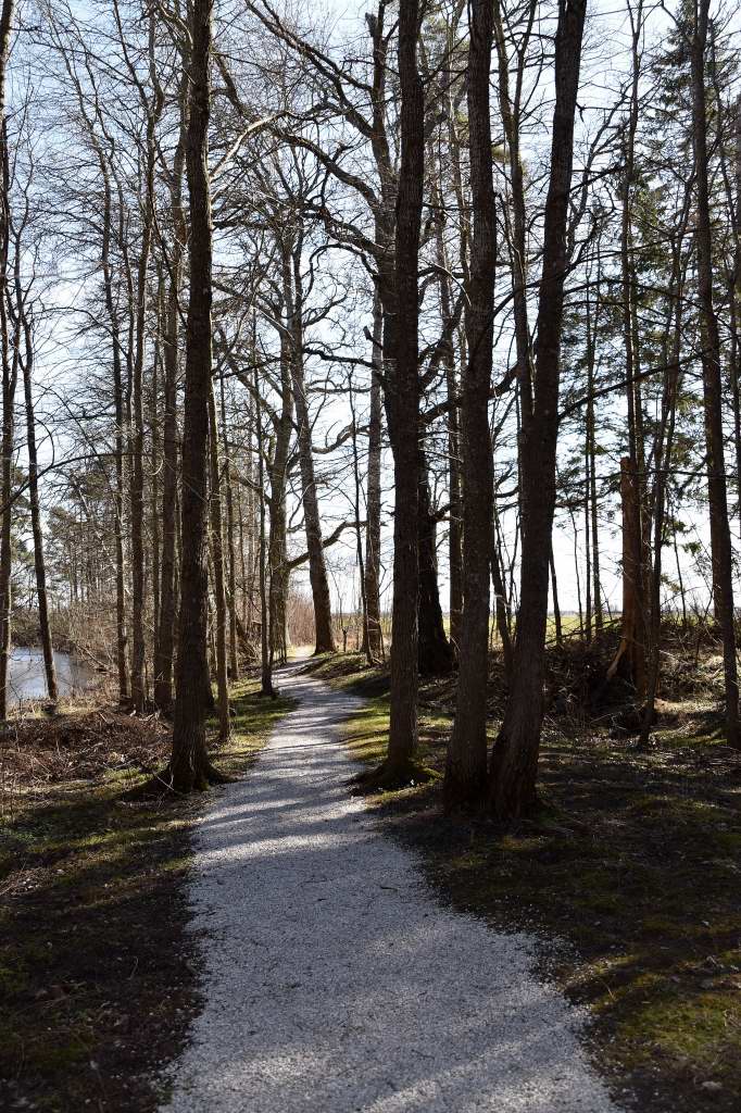 Här var det inte tal om grenar i en ojämn markyta. Våra fötter tog tacksamt emot underlaget. Den kyliga vinden kom inte åt våra vinterfrusna kroppar. Väldigt snabbt kom vi in i en skön harmoni. Mysigt att följa ån. Ibland såg vi en längre sträcka framför oss. Men oftast skymde spännande krön sikten. Vi njöt återigen av blåsippor. Solveig gick och släpade på sin stativväska och gjorde sina avstickare. Det gjorde jag också med andra kameran. Helst när vi mötte medmänniskor i större grupper. 😉