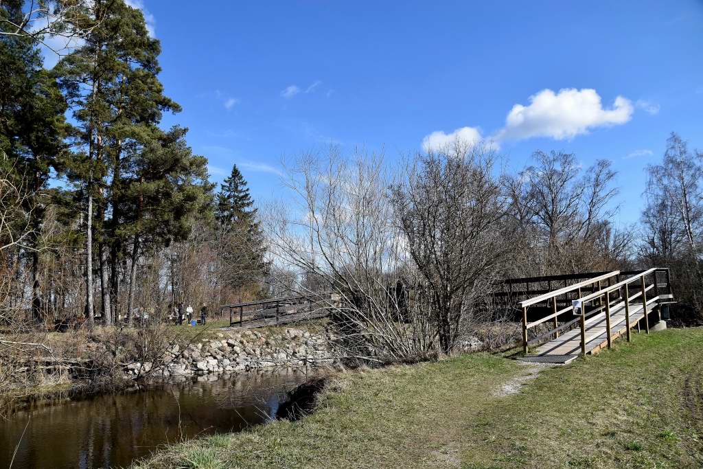 Vårt mål var att vandra den vackra leden längs Dalhemsån. Frågan var vilken av de två parallella promenadvänliga stigarna som vi skulle starta från? Vi bestämde oss för att gå över bron och ha störst chans att möta solen med ansiktet först.