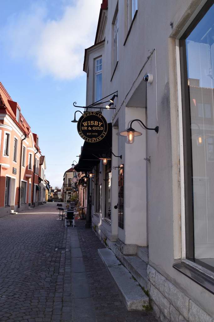 En snygg logga och skylt som sticker ut från mängden ger också guld i kassan. Familjeägda bolaget Wisby Ur & Guld har funnits på Adelsgatan 32 sedan 2000. Jag läste att företaget värnar om en levande innerstad och det ansvar som gäller för Visby som världsarvstad. Extra viktigt under den speciella tid som vi levt i sedan förra våren. Där butiksdöden fått fäste.
