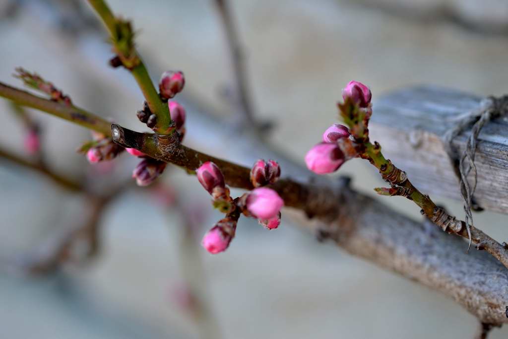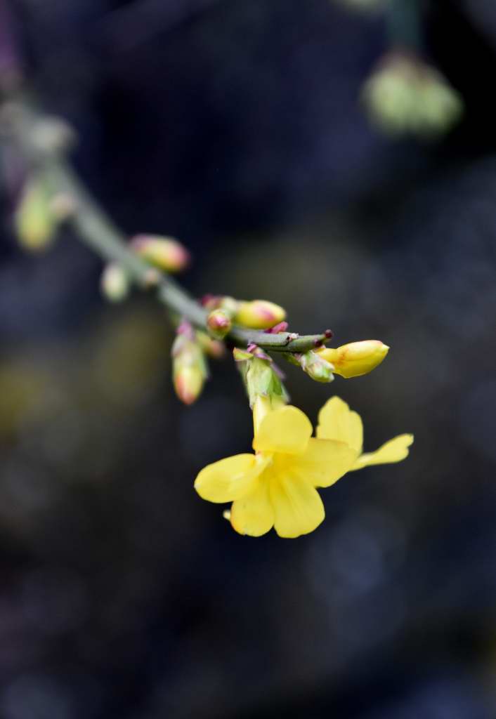 Ett ensamt slånbär som en färgklick bland många bruna nyanser.
