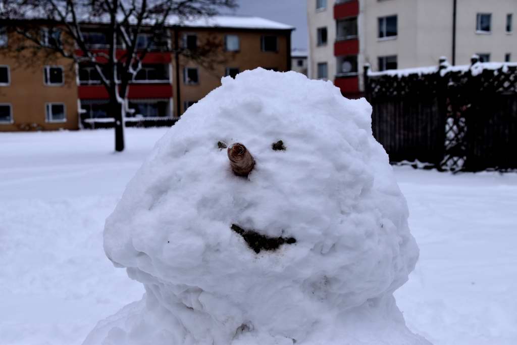 Den här glada figuren mötte vi utanför grannhuset. Han hävdade bestämt att han inte längtar efter plusgrader utan önskar sig en lång och kall vinter.