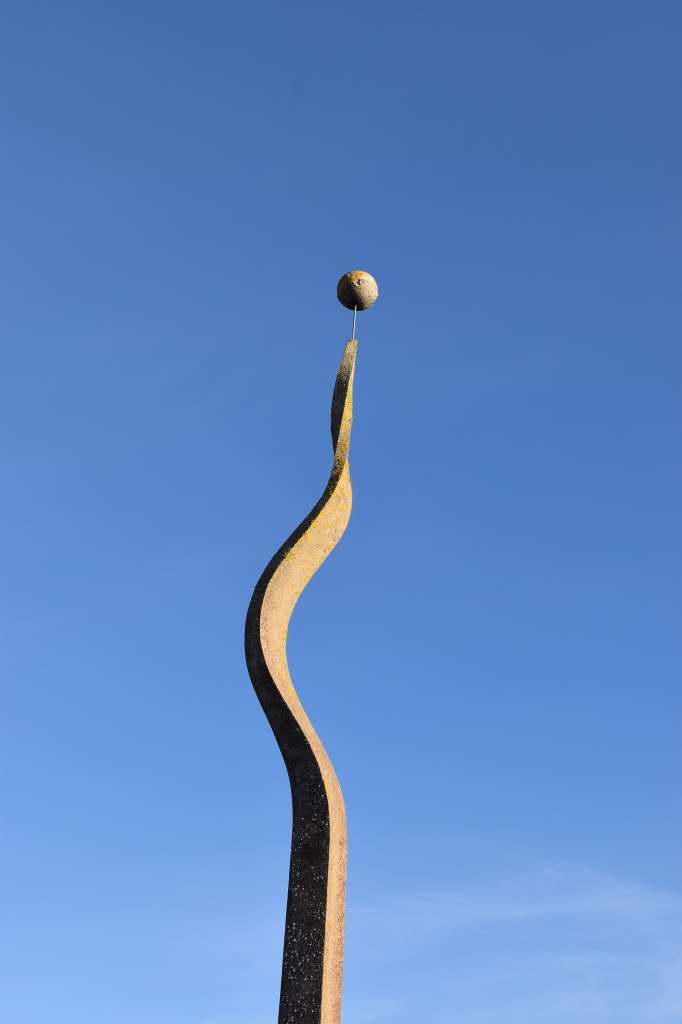 Anders gjorde formar och formsnickare på Skanska i Träkumla byggde formen. Med hjälp av en skylift skruvades bollen fast på invigningsdagen. Som gammal bollälskare uppskattar jag skulpturen, som jag kört förbi många gånger. Till slut stannade jag till och tog kort en solig dag.