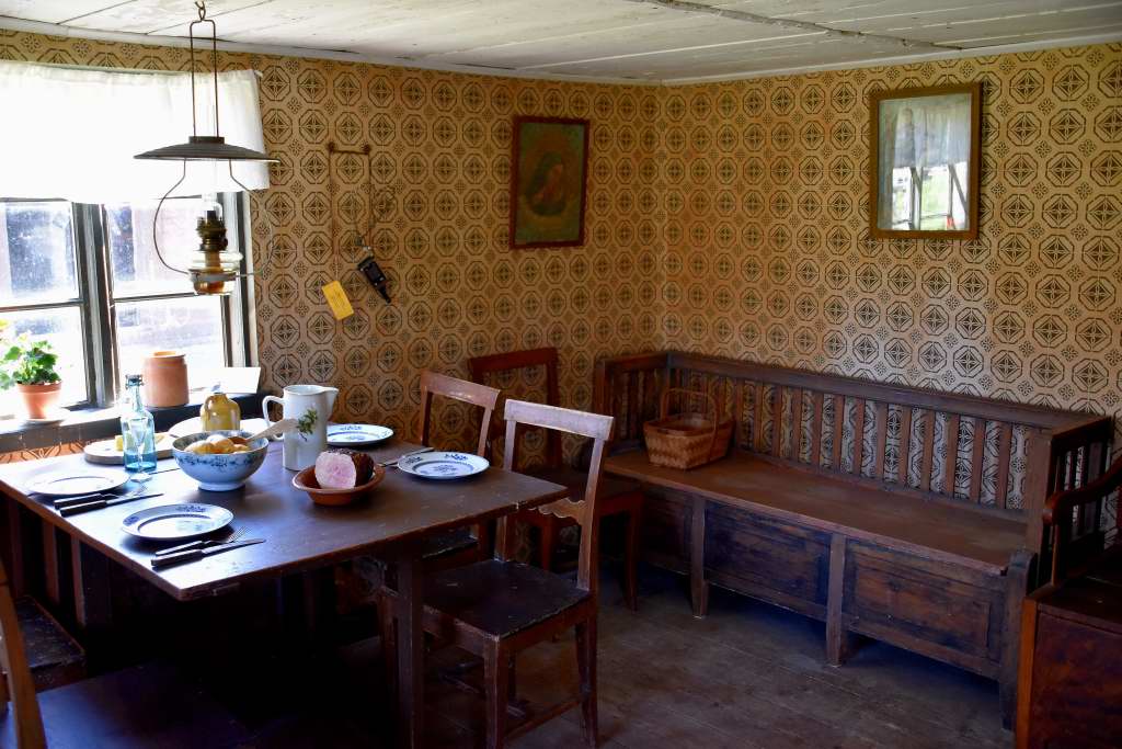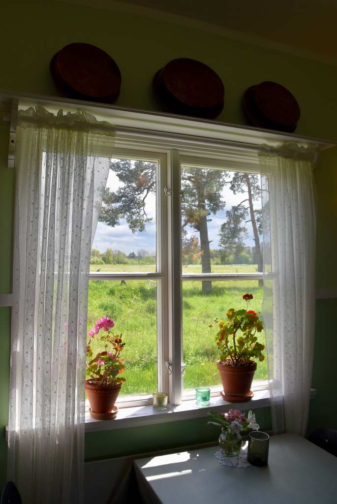 Det sägs att en bild ”beskriver” tusen ord. Men egentligen tog jag flera bilder direkt när vi kom in, under tiden som Solveig gick till disken. Då var det gäster vid fyra bord. När vi valde ut kort till inlägget blev det istället detta ”klassiskt rena”. Jag kan tänka mig att det ofta är fullsatt här, både inomhus och utomhus, när Gotlandståget är igång. (Se förra inlägget)