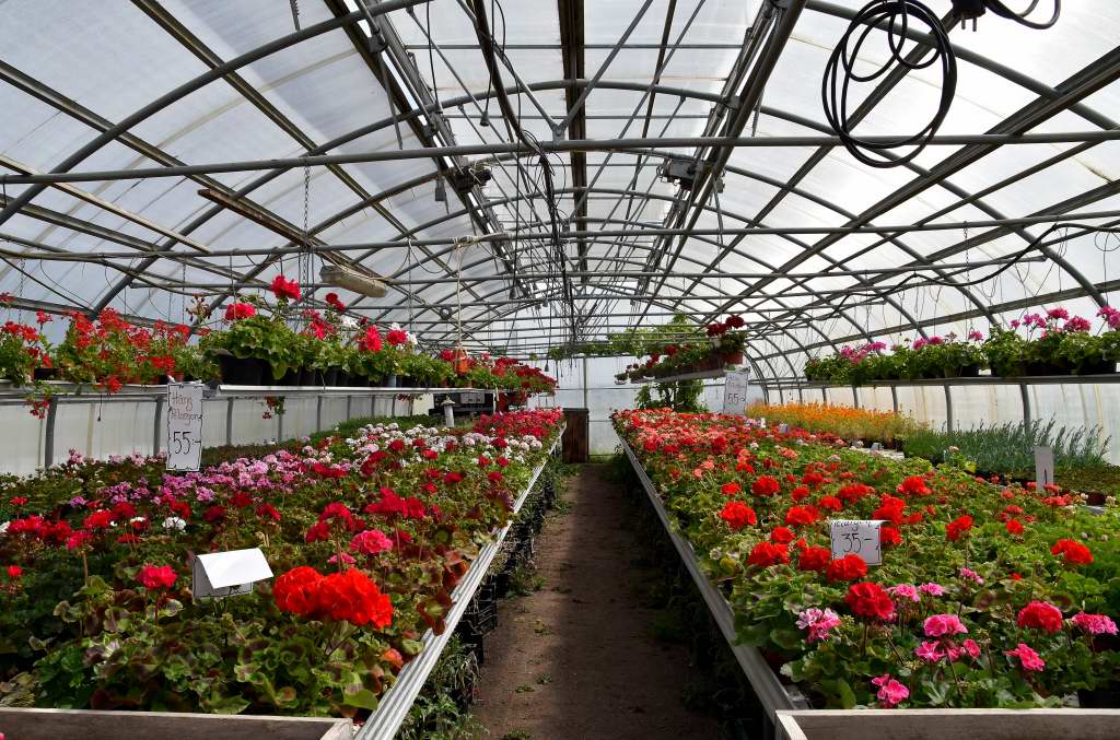 Vi tog oss vidare till ett av de andra växthusen och upptäckte ett hav av pelargoner i många olika färger.