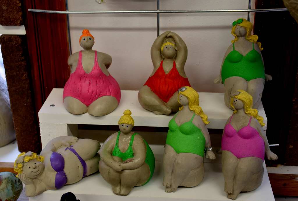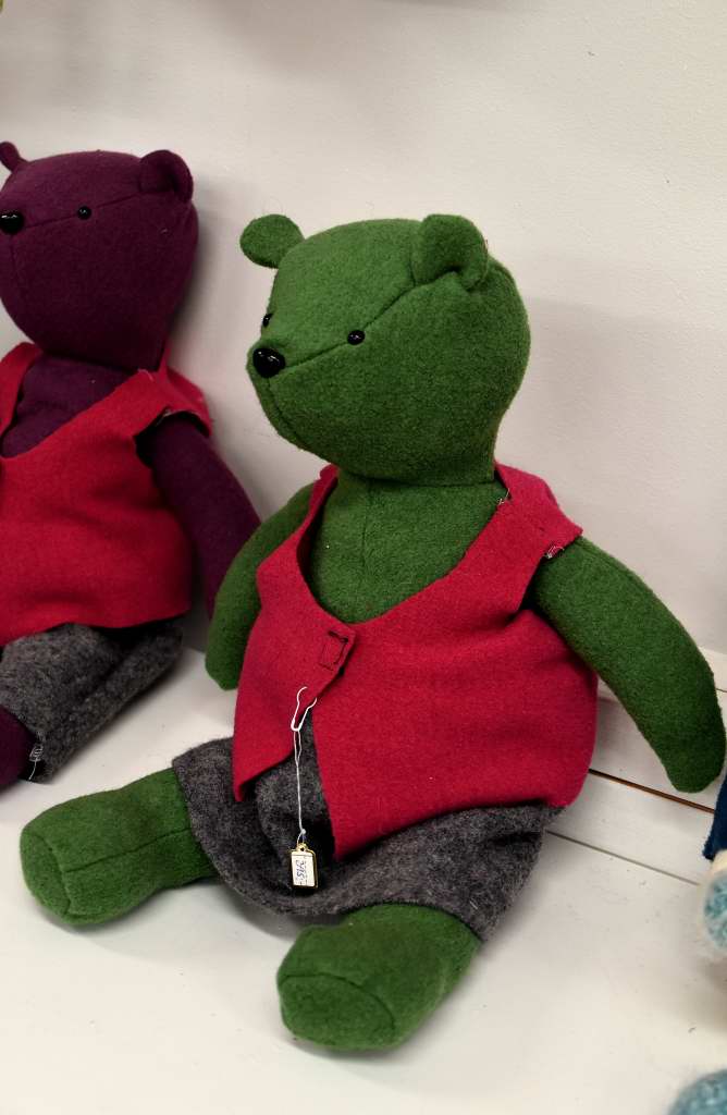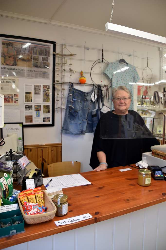 Jag lät bilderna avlösa varandra bara för att visa att det finns ett härligt utbud av olika tekniker och material i lokalerna. Det rör sig om allt från konst, smycken, textil, trä, ull, lammskinn, betong, vävt, tovat, stickat till keramik. Ungefär 16-17 olika hantverkare turas om att stå i den härliga gotländska hantverksbutiken. Måste berömma Barbro för att kaffet smakade extra gott denna lite frusna lördag. Tilltugget var också mums. 🙂