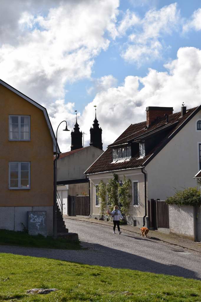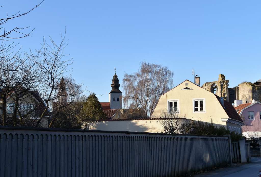 Om du kommer med färjan till Visby är det svårt från hamnen och en bit ut i havet låta bli att se S:ta Maria domkyrka. Under våra promenader i centrum har vi noterat att kyrkan eller åtminstone något av de tre tornen syns – nästan lite överallt. Vill du se interiören är det bara att trycka på den blå länken. https://gotlanduppochner.com/2022/05/20/den-syns-nastan-overallt-del-2/