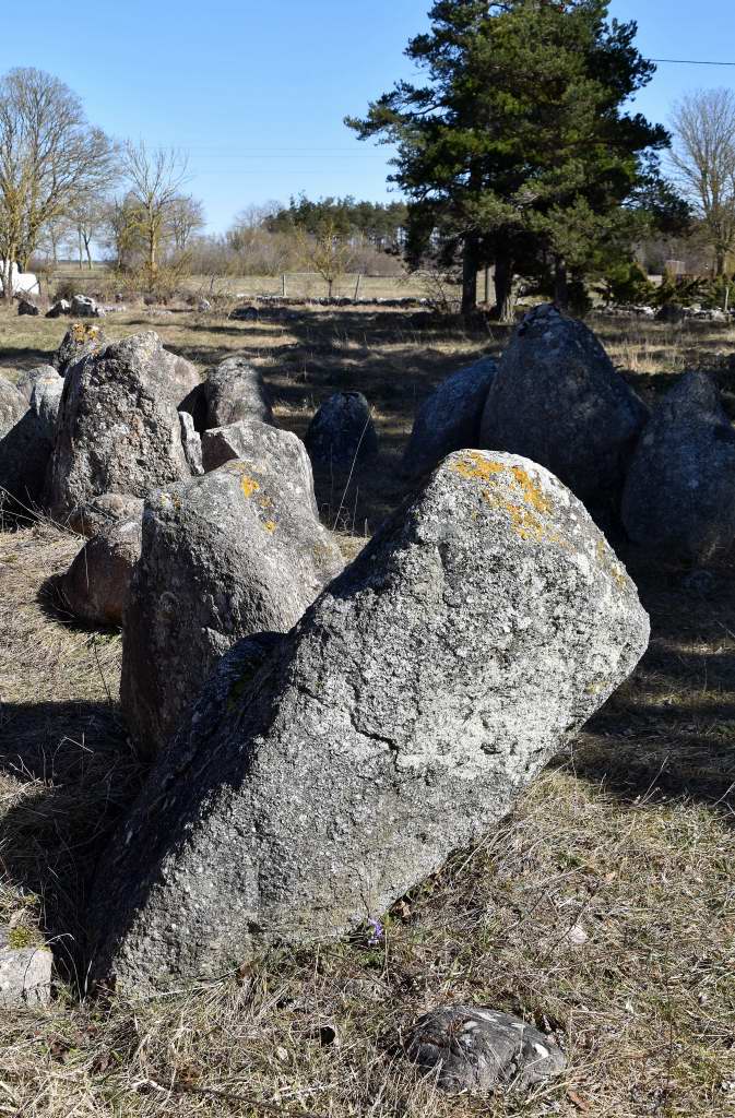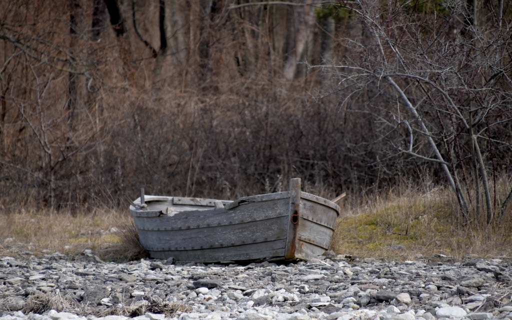 Två gånger har vi tagit oss nerför branten från fornborgen och höjden med vårens blåsippor. Då har vi befunnit oss ganska nära denna plats. Men eftersom målet låg dolt när vi började se havet tog annat mysigt över tankarna. Undra om det en gång, långt tillbaka i tiden, fanns flera bodar här? Var Brucebofiskarna i så fall bittra konkurrenter till fiskarna i Själsö? Min fantasi seglade iväg till ”radiobåtar” på sjön. En blöt motsvarighet till de mer begränsade radiobilarna på tivoli.