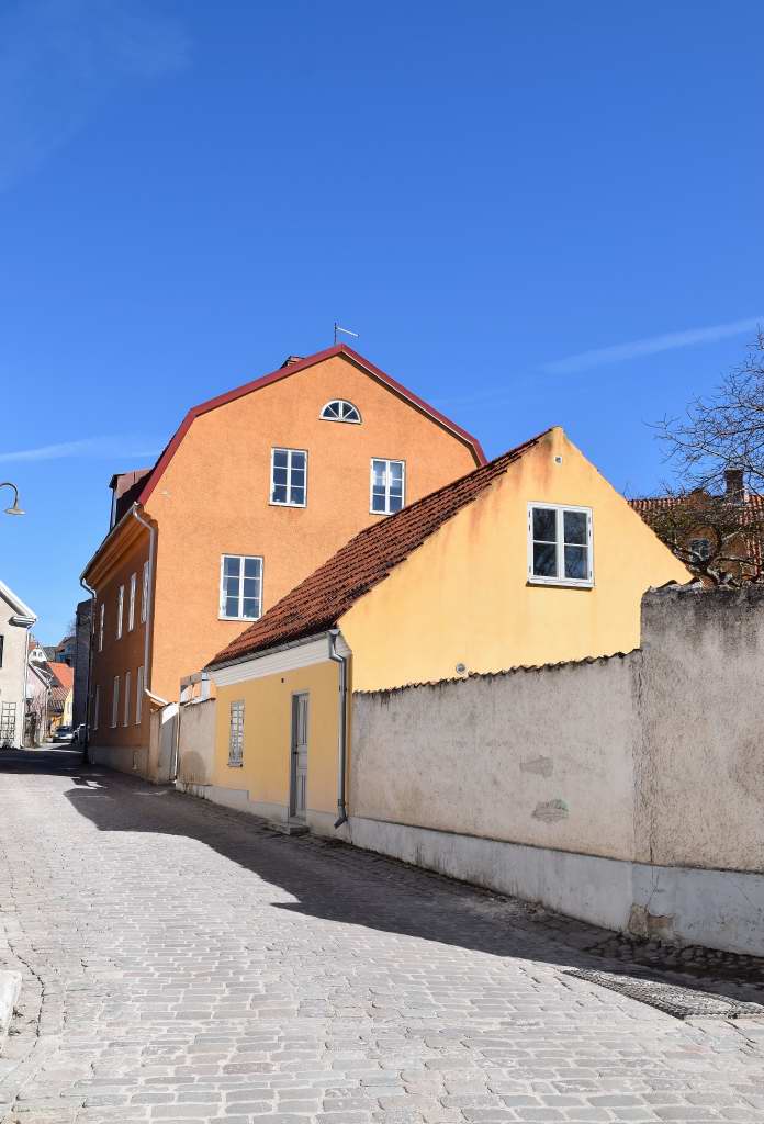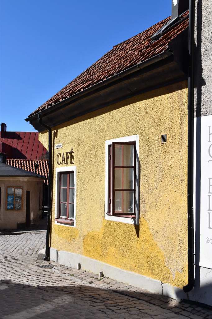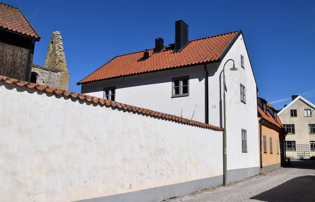 Den här gatan ligger bra till för mycket. Exempelvis är det nära till tre kyrkoruiner. S:t Clemens kan du skymta på ett foto. Du som varit med som bloggbesökare sedan starten 2019 minns kanske när vi presenterade 25 fik som vi besökt under året. Sedan fick bloggbesökarna rösta fram sina egna favoriter. Café gula huset vann den tävlingen. Ett populärt ställe som hållit igång sedan 1987 och har öppet året runt. Sådant uppskattas. Hotell S:t Clemens blev det inte för oss om ”några timmar”. Undra hur många sekunder det är kvar? Det som vi kan dela med oss av är att vi i morse besökte de sista gränderna. Vi försov oss för första gången. Klockradion spelade ingen musik, bara brus. Därför var vi långt ifrån ensamma där vi befann oss. Svårare att fotografera. Men oj vad mycket vackert och intressant det finns att se innanför muren. Jag sög in utsikten från Trappgränd. ❤ Höll för näsan när vi gick i den branta trappan, halvt inomhus, som tydligen varit en ”kisstoalett” i natt. 😦 Vi blev ledsna när vi såg en fågelunge som troligen ramlat ner från boet i trädet på Hamngatan. Nu väntar andra sysslor.