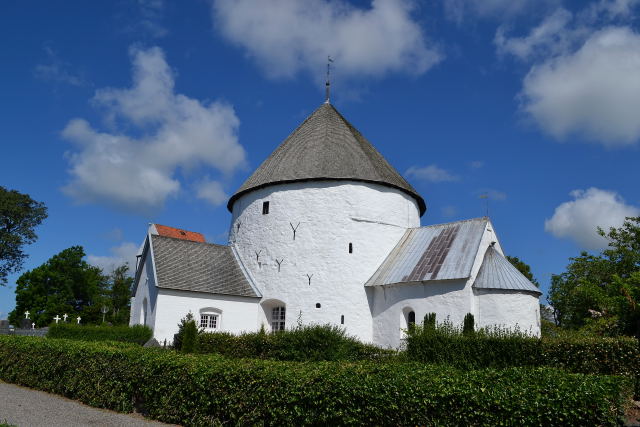 De fyra rundkyrkorna ska vi granska betydligt noggrannare än vi gjort tidigare. Annars finns det bara tre till i övriga Danmark. Hur står det till i Sverige, kanske du undrar. I vårt långa smala land finns det åtta stycken. På österlen finns en av dem.