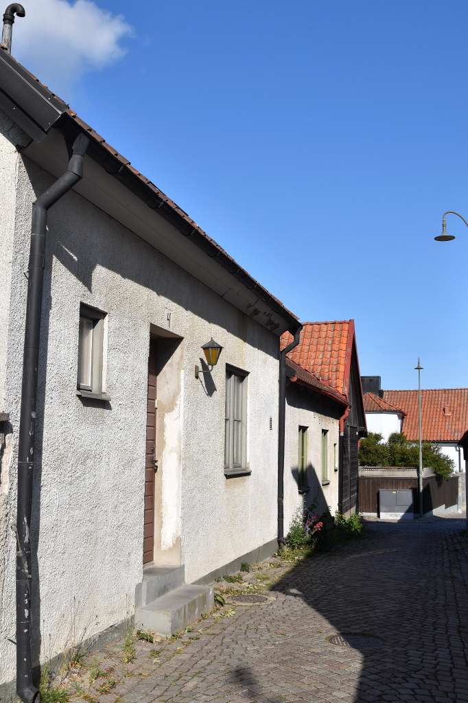 Självklart gjorde vi som vanligt en husesyn. Det hör till ritualen när vi Hemestrar. Jag hade läst att Visbys äldsta sjukhus inhystes här. Det fanns även fattighus och gästhus. Nu är huvudbyggnaden en av öns äldsta bostadshus. Innan vi somnade ”stående” gick vi ut en kvällssväng. Överallt såg vi människor i medeltidskläder. De smälte verkligen in i den vackra omgivningen. Medeltidsveckan var inne på sin slutspurt. Det var vår vakentid också. Minns inte om det var jag eller Solveig som bar den andra ”hem”.