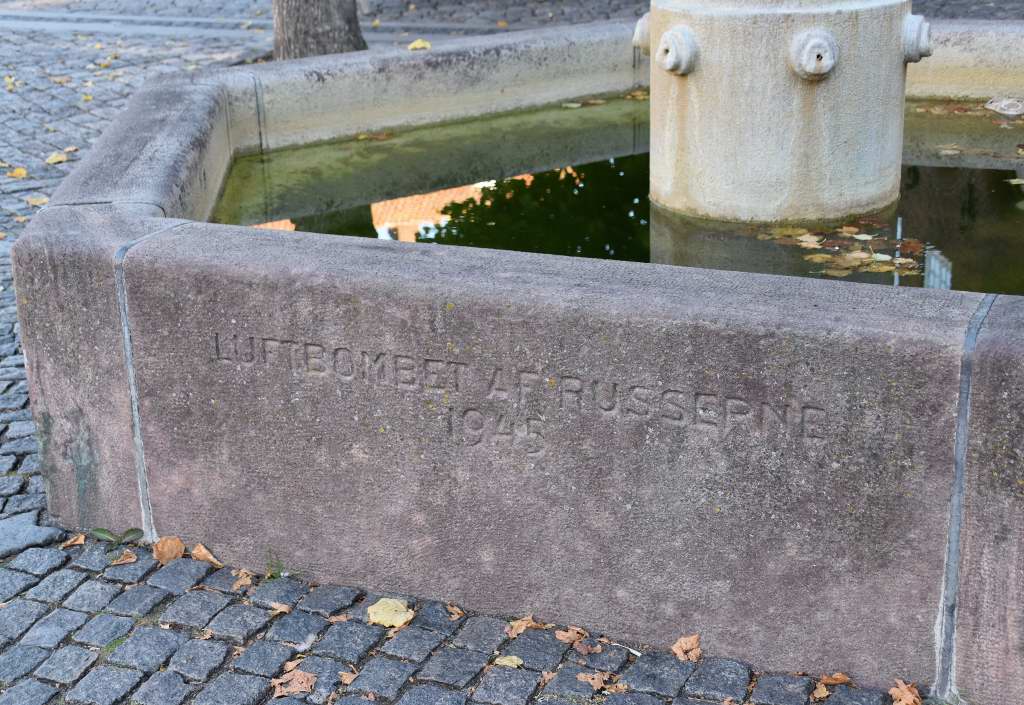 När den siste ryssen lämnade Bornholm 1946 restes brunnen. Det du ser på nära håll på bilden ovanför föreställer havsguden Triton.