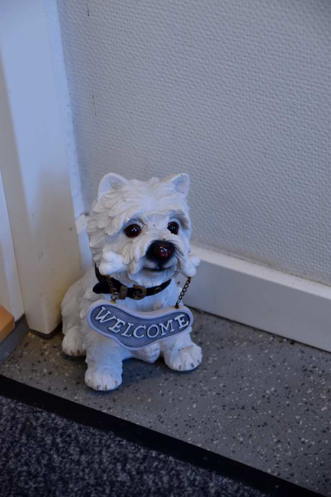 Denna skällfria söta hund signalerade att vi endast hade en trappa kvar till vår lya.