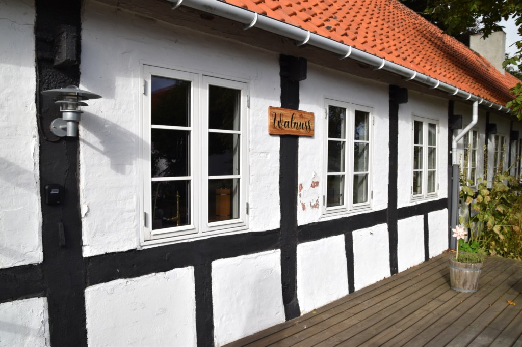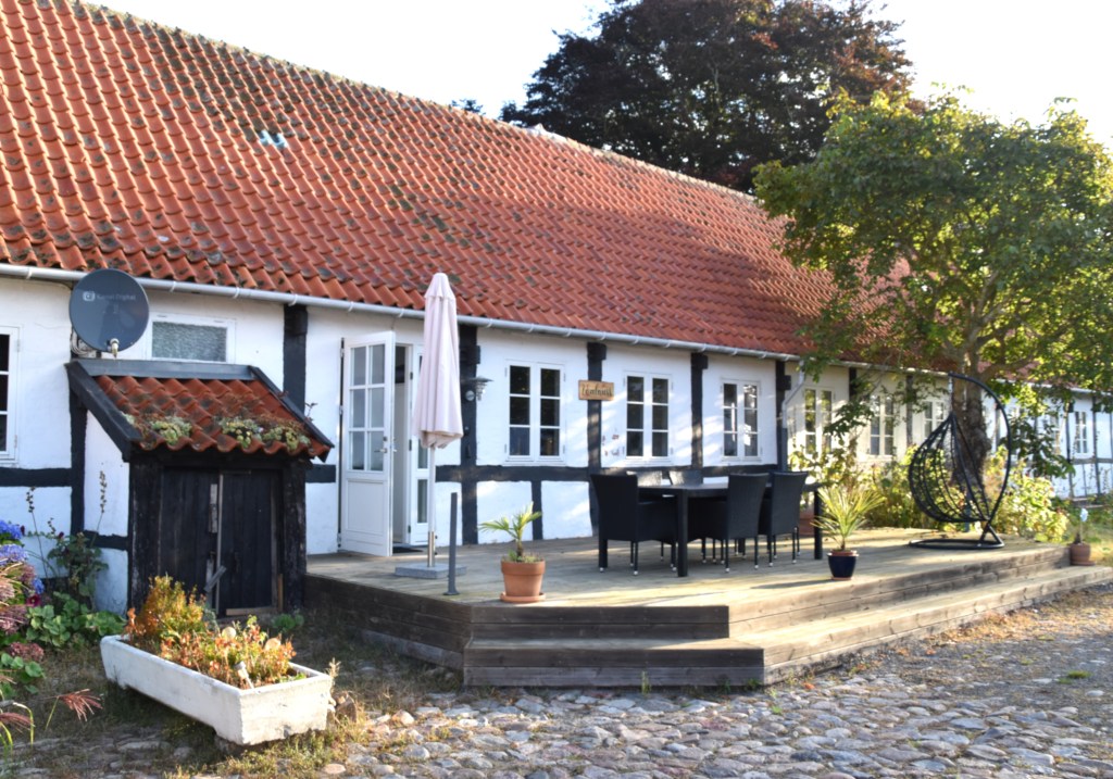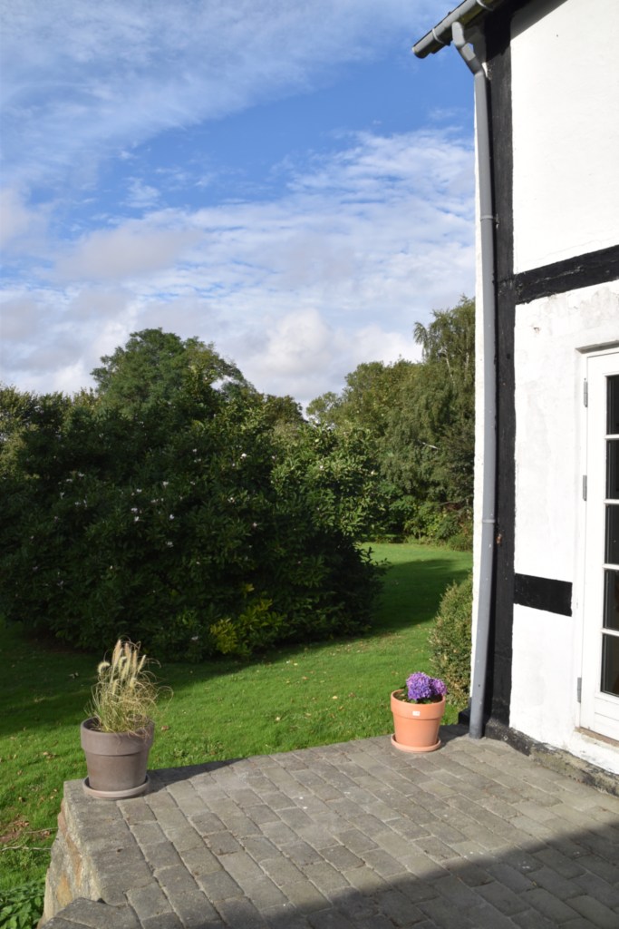 Det fanns en lummig trädgård på ”baksidan”, som öppnade upp för olika aktiviteter för gästerna. Själv satt jag på denna plats och njöt i solen en stund, när Solveig gick iväg på ett eget äventyr. (Redovisas efter interiör inlägget.)