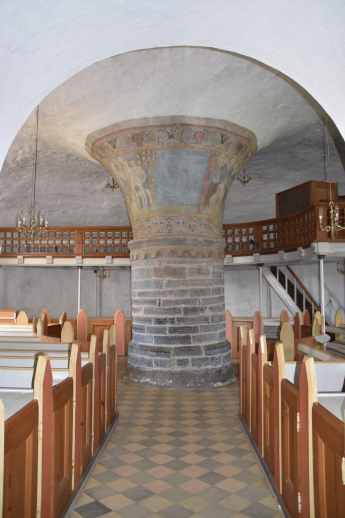 Det är verkligen speciellt med rundkyrkorna. Den centrala pelaren med sina berättelser är fin. Synd att inte allt är bevarat. Mäktigt också med runstenarna.