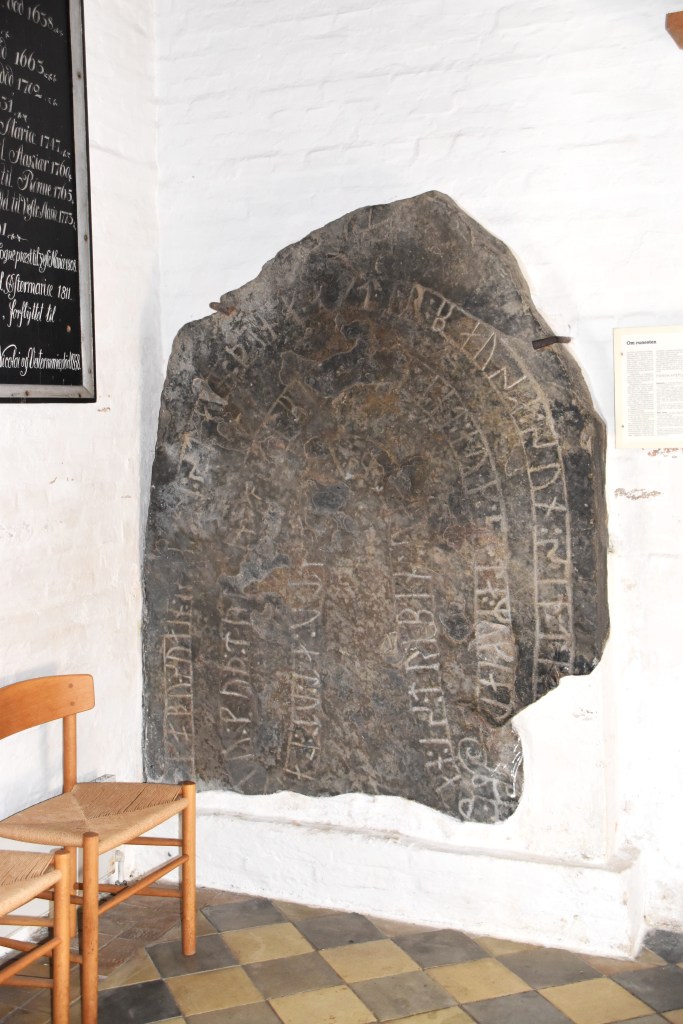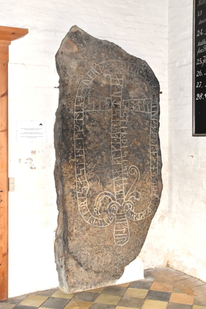 I Verandan finns det två runstenar. Den äldsta är från omkring år 1050 och har ett inristat kors. Under korset slingrar sig en orm i tre slingringar. Följande inskription finns att läsa: