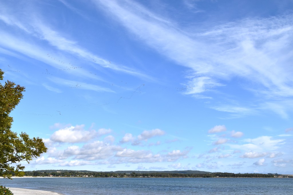 Balka strand innebär mycket nostalgi för oss. I Balka bodde vi första gången som vi besökte Bornholm. Härliga moln och väldigt många fåglar som verkar vara på väg till något spännande resmål.