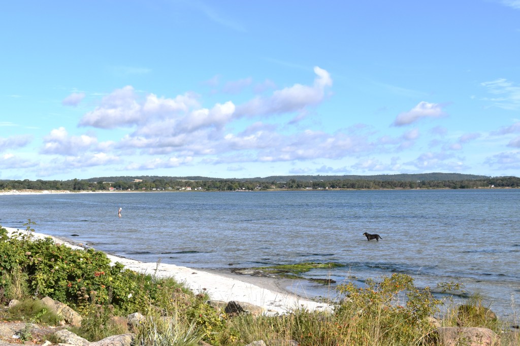 Vilken härligt vit sand och vilken vacker strand. Den hunden njöt säkert av att få vandra omkring i vattnet, kanske simma lite. Den njöt säkert lika mycket som matte som kunde stanna uppe på land och bara hålla koll.