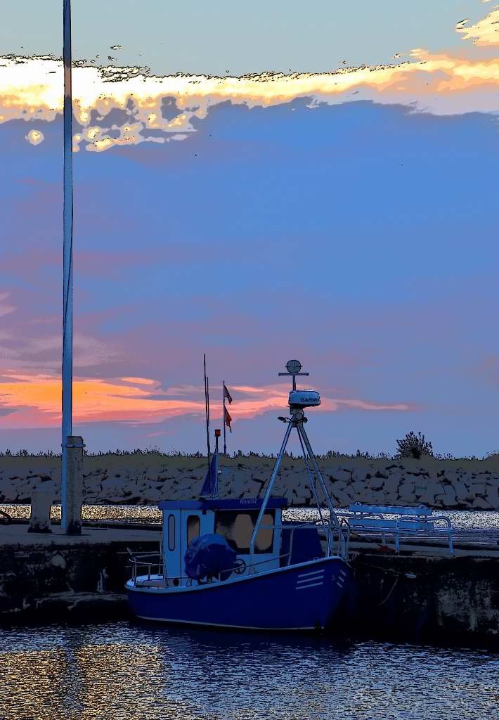 Det verkar inte vara någon större skillnad, vad det gäller detta, om man jämför Bornholm med Gotland. När jag strosade omkring med kameran i hamnen i Nexö, en tidig morgon, var jag ganska ensam. Lekte lite med kameran och effekten ”fotoillustration”.