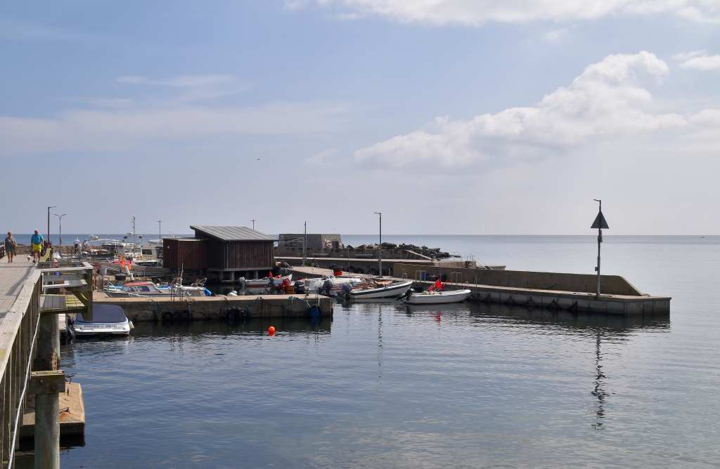 Den som befinner sig i hamnen i Gudhjem gör klokt i att vända ryggen mot havet och ta sikte på kyrkan. Då upptäcker man nämligen att det finns trappsteg som leder upp till en fantastisk utsikt. Den vill man ju inte missa!