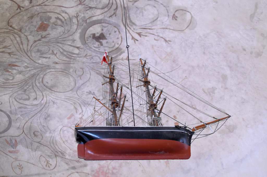 Jag hittade ingen fakta om det gröna votivskeppet med dansk flagga.
