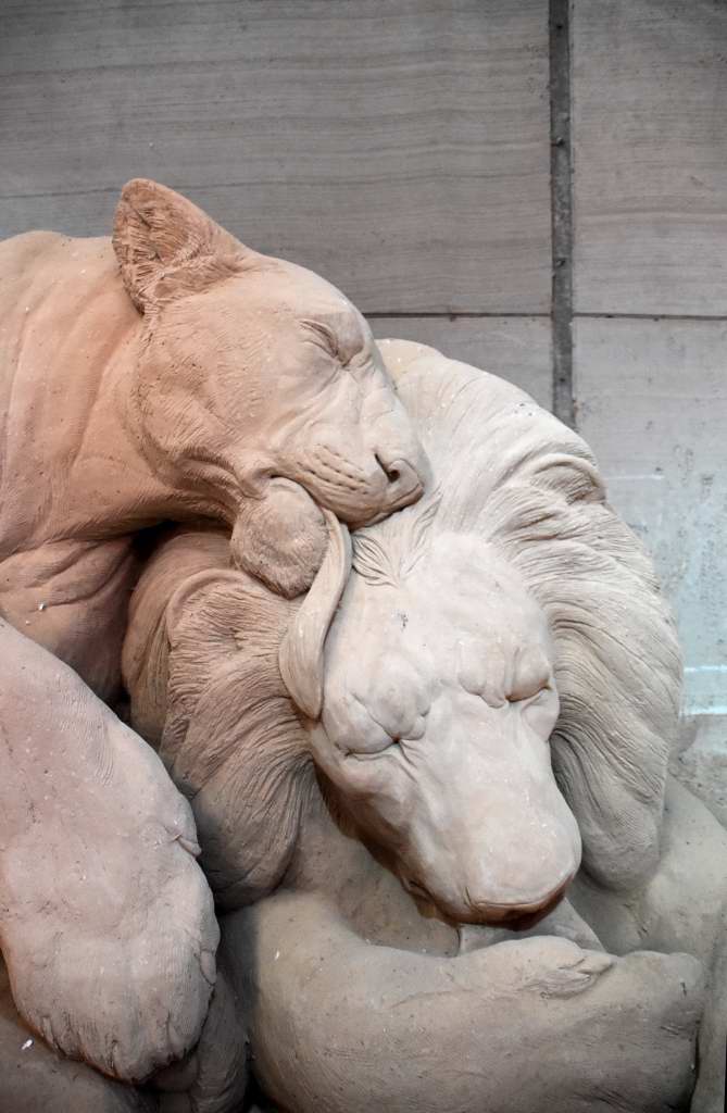 Det finns en ömhet i de här bilderna, på lejonen, som berör mig. Så välgjorda de är. Man tror nästan att de plötsligt ska röra på sig. Konstnären bakom verket heter Gresham Glover och kommer från Portugal.