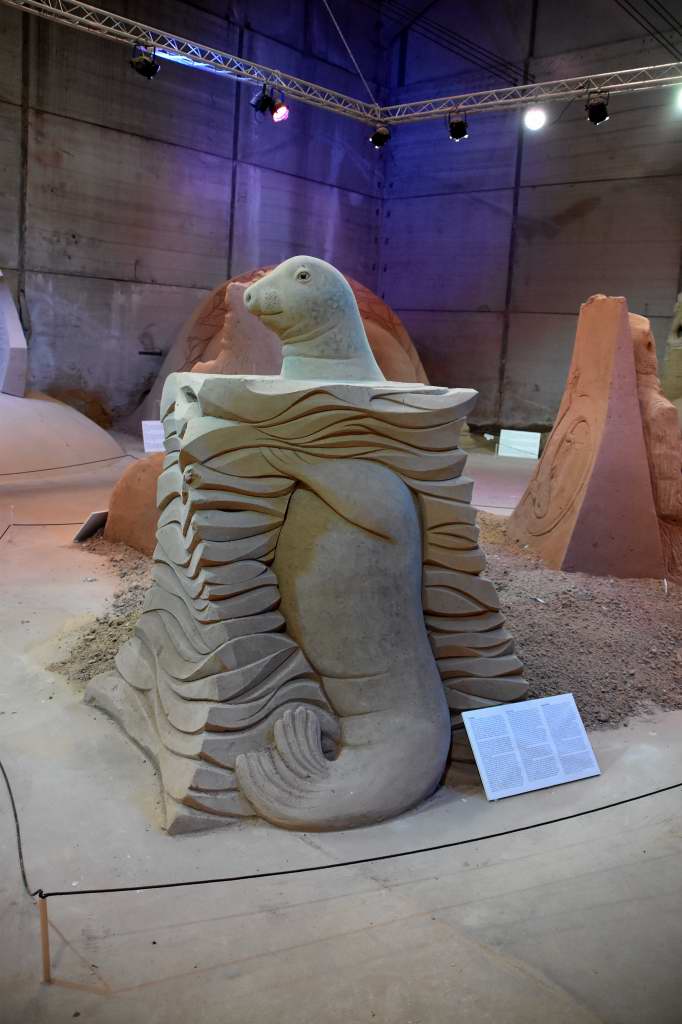 Gråsälen blev en av våra favoriter. Tycker om bakgrundsfärgerna som passar så bra till sandens färg. Det stod inte något konstnärsnamn på skylten så jag vet dessvärre inte vem som gjort denna fina skulptur.