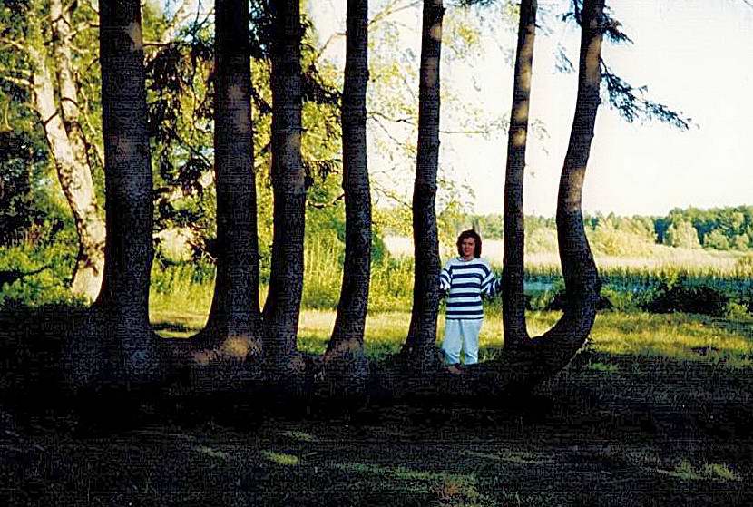 Vi åkte till Almindingen enbart för att försöka hitta denna häftiga sjuträdsskapelse. Det gick inte lika bra tjugo år senare när vi skulle visa våra döttrar ”trädkonsten”. Jag läste vid hemkomsten att den hade ruttnat och sågats ned.