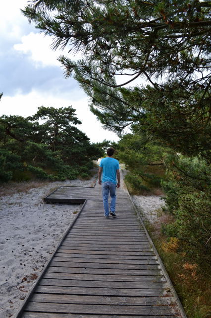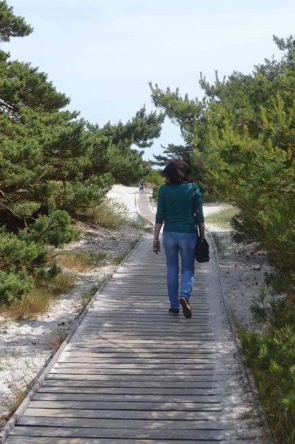 Vi bodde nära havet, på en plats som heter Balka. Därifrån gick vi snabbt ner till stranden. Det småregnade och blåste rejält under ankomstdagen. Vid ett tillfälle under veckovistelsen låg vi på en filt på den fina omtalade stranden i Dueodde. Vi såg bara ett fåtal människor omkring oss. Vi kände på vattnet. Iskallt. Inte en tanke på att bada.