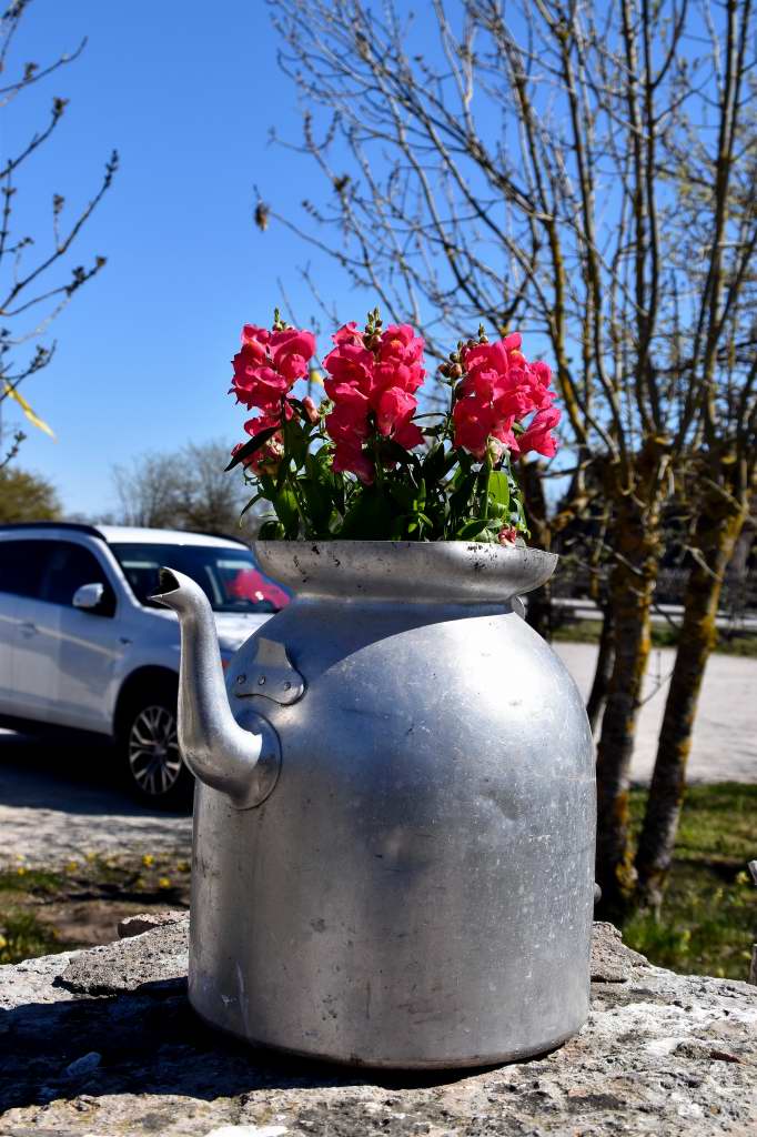 Precis som under besöket 2019 valde vi, denna soliga sköna junieftermiddag, att sitta utomhus bland blommor och växter.