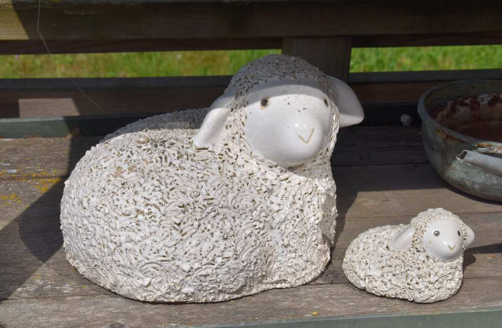 Gott fika, tre av familjens fyra medlemmar, fågelsång och bräkande lamm, utsikt mot grönskande hagar med idisslande lamm och en njutbar stillhet och ro. Kan det bli bättre?