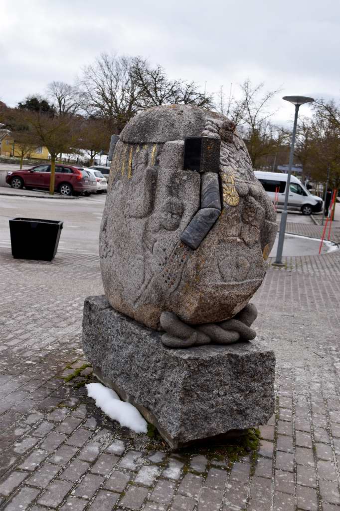 Utanför akuten till Visby lasarett finns denna staty i granit av Pye Engström. Tidigare har vi visat Pys Utsträcka händer https://gotlanduppochner.com/2021/08/25/utstrackta-hander/ som finns i Almedalen och var en hyllning till Olof Palme.
