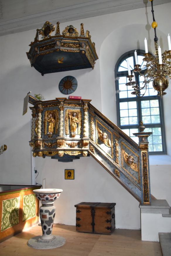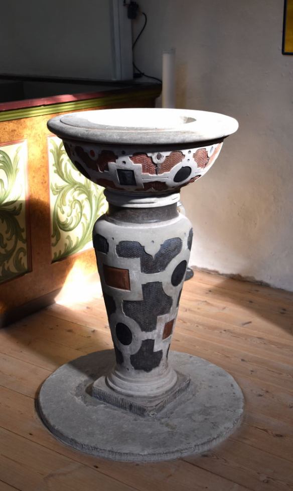 Dopfunten av sandsten är tillverkad i Burgsvik 1642.