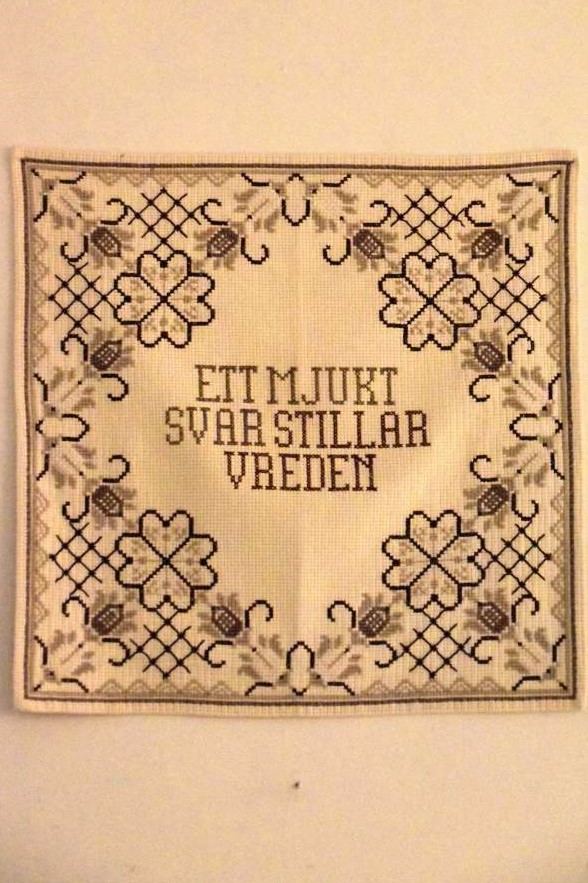 Jag googlar förstås runt litegrann när jag kommer hem för att lära mig mer om det här med korsstygnsbroderi. Nu vet jag att man syr korsstygn över hela världen. Jag vet också att det var vanligt att brodera korsstygn redan på medeltiden. Alltså passar det verkligen bra att ha en korsstygnsutställning i Visby.