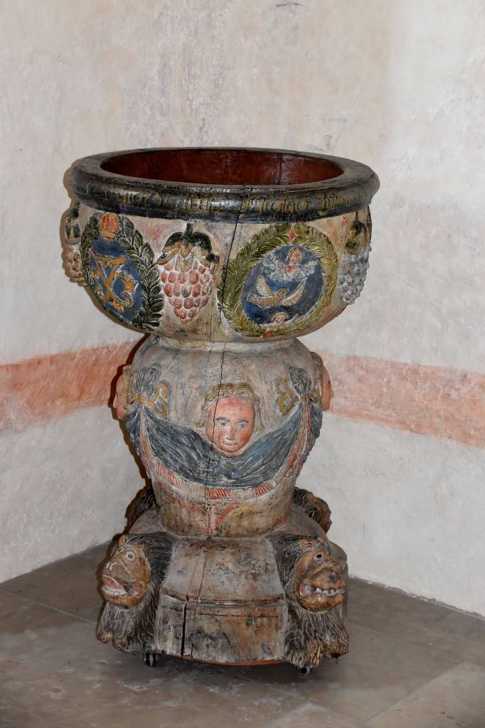 Dopfunten som är gjord av trä är från 1741.