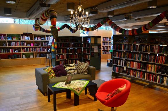 Detta är andra plan. Fina möjligheter att slå sig ner vid en fåtölj med fönsterplats. Ofta sitter jag på en bekväm stol och läser en stund medan Solveig letar lämplig litteratur till sina elever.