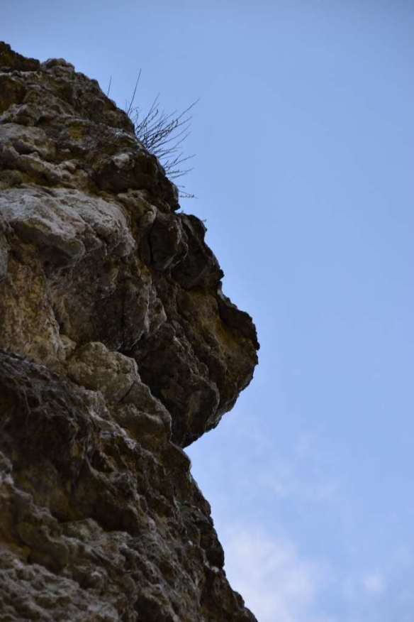 Den stora rauken Jungfrun avtecknade sig mot himlen och vakade över den lilla hamnen.