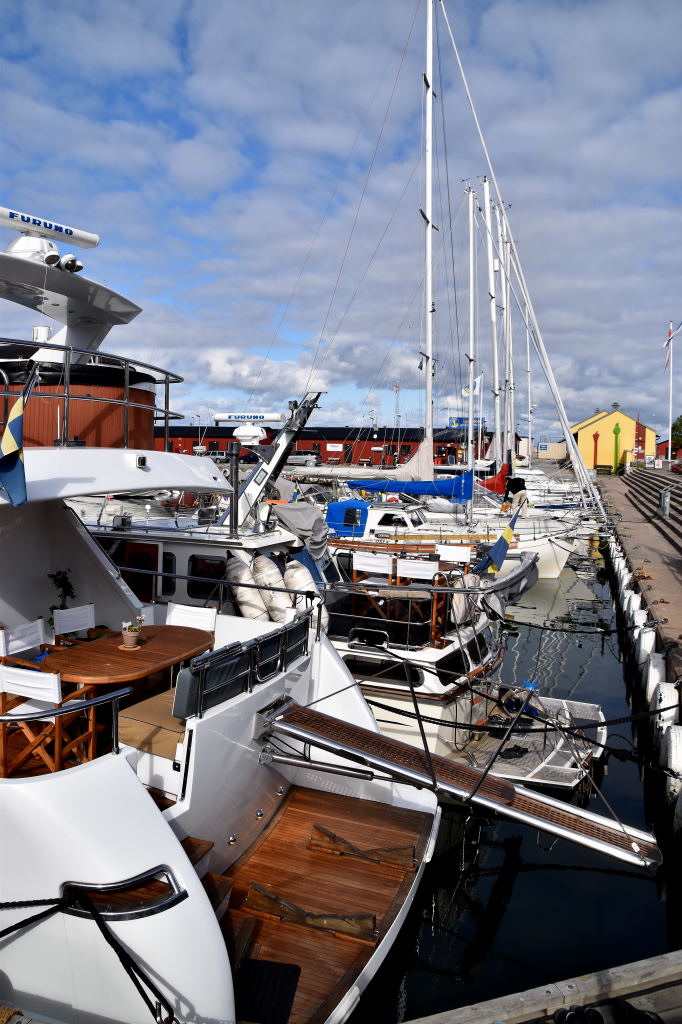 Undra om jag skulle bli rik om jag tillverkade ett slags ”båthorn”, motsvarighet till skohorn, för de som tycker det är knepigt att ”parkera” sin lilla skuta? 🙂 För den som älskar glass, båtar och människor borde det vara ett paradis att slicka i sig både det ena och andra på en bänk utanför Glassmagasinet. Ibland har jag knepigt att välja glass-sorter där. Har du också det? En gång hann det nästan bli höst och min fantasihjärna tyckte att den unga expediten fick djupa rynkor i pannan och började få gråa snabbväxande hårstrån. Eller så var det bara för att jag hade valt sorten fantasilakrits. 🙂