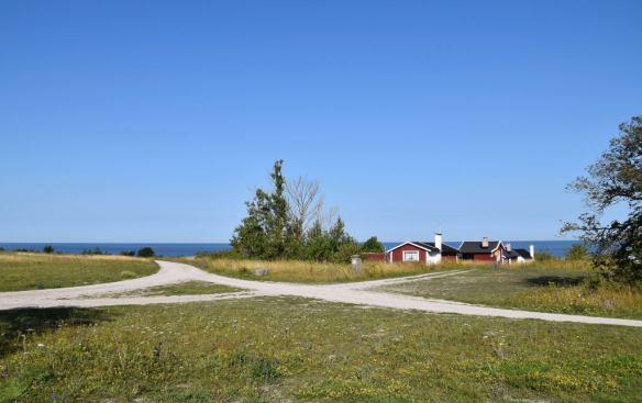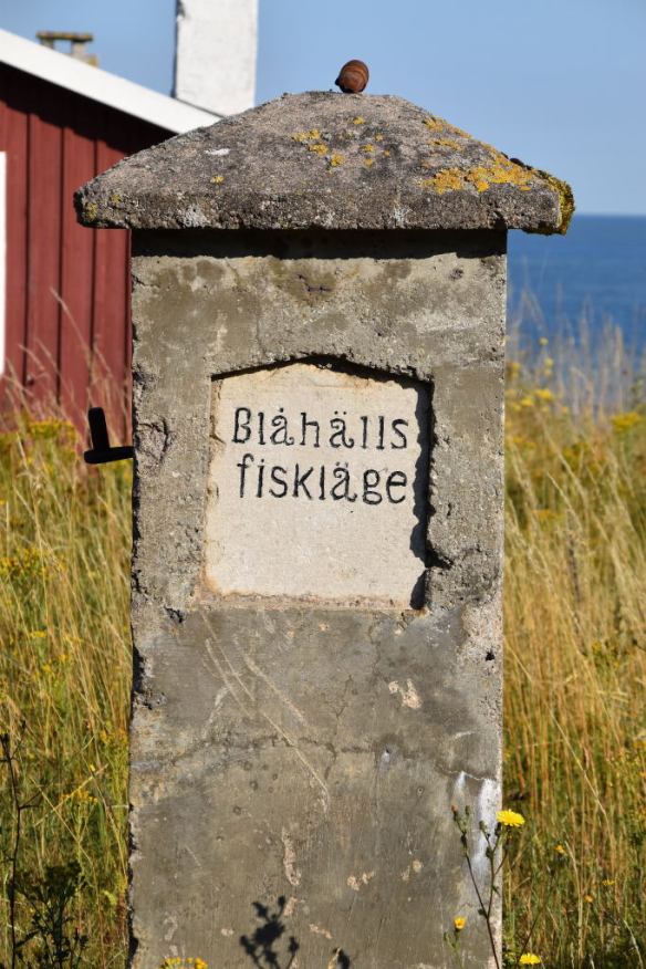 En miss blev det på vägen ner på grusvägarna. Hade jag haft kameran beredd skulle jag fotat en stor rovfågel på en stubbe. Den missen var glömd när vi klev ur bilen. För vårt mål med denna tripp var att besöka Gotlands västligaste fiskläge – Blåhäll. (De hade inget e på den tiden som du kan se på förra fotot)
